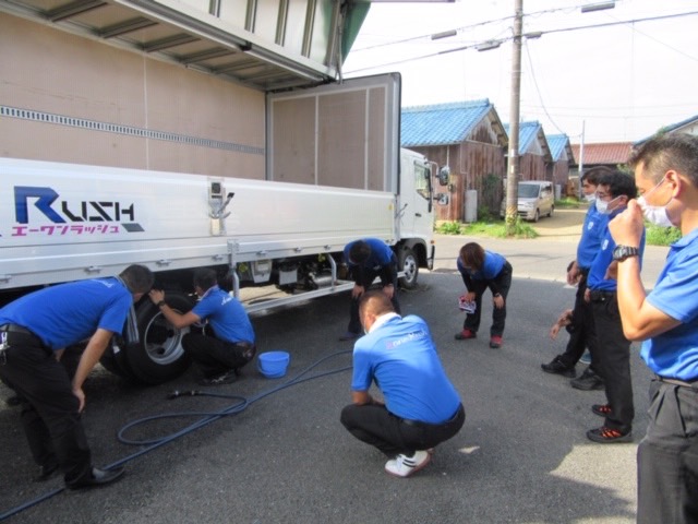 トラックの洗車にもこだわりを持ち、細部まで綺麗に仕上げるよう