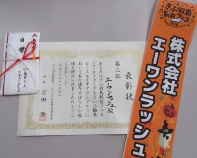 待ちに待った羽島駅前フェスが4年ぶりに開催され、弊社も張り切って三輪車レースに出場!惜しくも受賞は叶いませんでしたが、会社アピールのパフォーマンスで審査員特別賞に輝きました。大きな声援と拍手で応援して下さった皆さんありがとうございました。