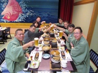 ビンゴ大会&和太鼓ショーを楽しんだ後は、部屋で再び酒盛りと相成りました。