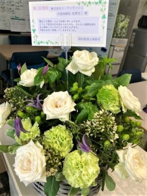 税理士の先生から創立10周年祝いのお花を頂戴しました。